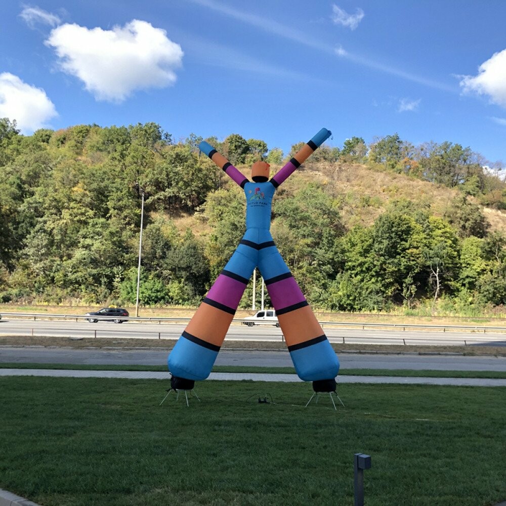 Аеромен рукомах складається з текстильного корпуса та вентилятора, який постійно подає потік повітря знизу вгору. Через гнучку форму рукав не тримає жорсткої геометрії, тому тіло “танцює”, підіймає руки й хаотично коливається. У цьому форматі важлива не лише висота, а й стабільність повітряного потоку: коли вентилятор дає рівну подачу, фігура виглядає “живою” та охайною, а не здутою або перекошеною. Саме ця динаміка робить рукомахи ефективними: надувна реклама не зливається з фоном, а помітно відрізняється від статичних банерів. Для бізнесу це означає просту механіку: вулична надувна реклама спершу зупиняє погляд, а вже потім дає шанс людині знайти вхід, помітити акцію та зайти.