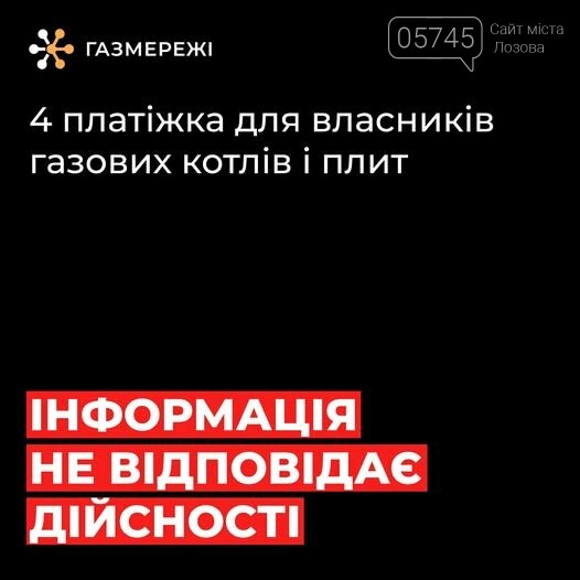 У ЗМІ з’являються повідомлення про нібито «четверту платіжку за газ» для власників котлів і плит. Ця інформація не відповідає дійсності.